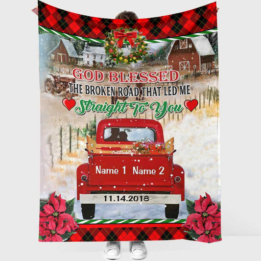 God Blessed The Broken Road - Personalized Christmas Couple Blanket