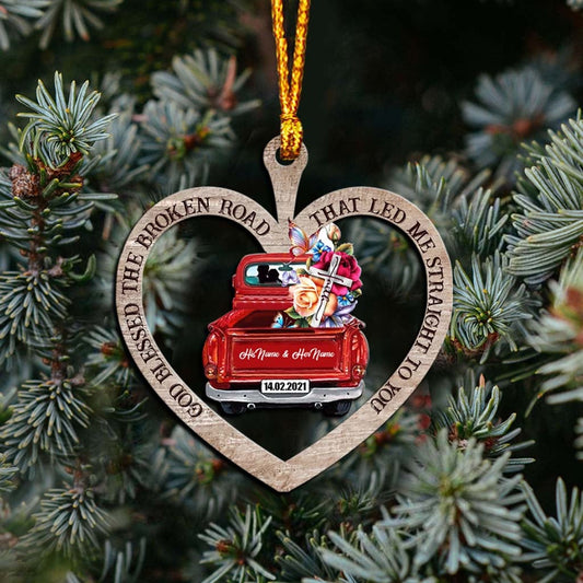 God Blessed The Broken Road - Personalized Christmas Couple Ornament